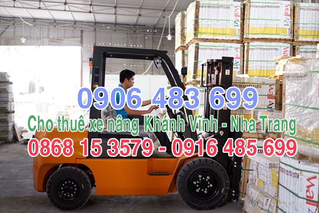 Quý khách có nhu cầu thuê xe nâng tại Khánh Vĩnh Nha Trang để sử dụng hãy liên hệ ngay với chúng tôi 0916485699 - 0868 153579 - 0906 483699 luôn sẵn sàng tư vấn cho quý khách lựa chọn dòng xe nâng phù hợp nhất với nhu cầu của quí vị.