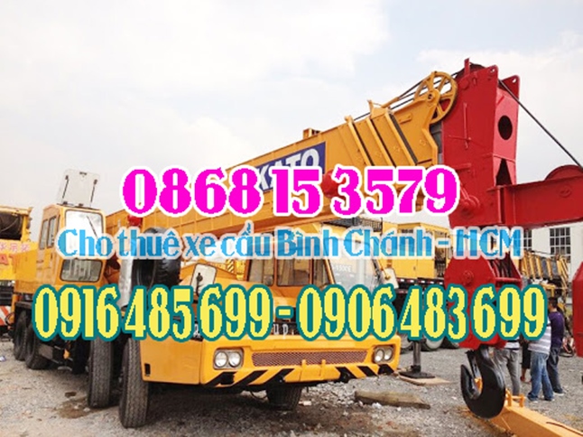 Ngày nay, hòa với nhịp độ phát triển của tp Hồ Chí Minh, dịch vụ cho thuê xe cẩu tại Huyện Bình Chánh cũng dần phát triển để đáp ứng nhu cầu của khách hàng. So với sức người để hoàn thành một công việc nào đó đòi hỏi phải có xe cẩu thì chúng ta tìm thuê xe cẩu để mang lại hiệu quả tốt nhất và an toàn nhất. Chúng tôi chuyên cho thuê xe cẩu tại Bình Chánh - HCM với giá cả phải chăng hợp lý.