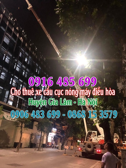 Bạn cần tìm thuê xe cẩu cục nóng máy điều hòa huyện Gia Lâm Hà Nội? Hãy gọi ngay đến chúng tôi 0868153579 - 0906483699 - 0916485699 chuyên cho thuê xe cẩu cục nóng máy điều hòa tại Gia Lâm (hà Nội). Chúng tôi có đội ngũ lái cẩu chuyên nghiệp, nhiều năm kinh nghiệm, tâm huyết với nghề tự tin mang đến cho quý khách hàng công việc chuyên nghiệp và nhanh chóng, từ đó rút ngắn được nhiều thời gian và chi phí thuê xe cẩu của quý khách hàng.