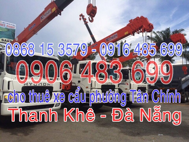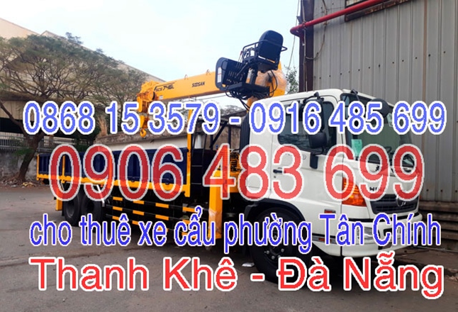 Anh chị em nào cần thuê xe cẩu Phường Tân Chính vui lòng liên hệ: 0916485699 - 0868153579 - 09064836996483699 chuyên cho thuê xe cẩu tại Tân Chính - Thanh Khê - Đà Nẵng. Các loại xe cẩu cho thuê từ 2,5 tấn đến 50 tấn sẽ đáp ứng nhu cầu của mọi người: chuyện nhận cẩu hàng hóa, máy móc, thiết bị công trình, vật liệu xây dựng, cây xanh, cẩu chuyển hàng hóa.