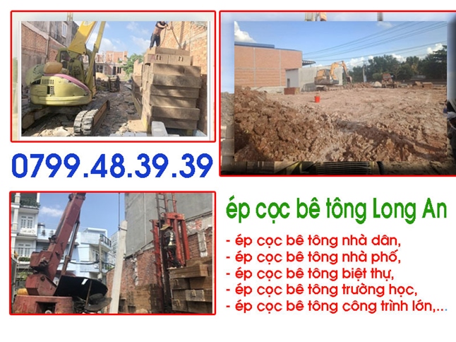 Là đơn vị trực tiếp sản xuất và thi công ép cọc bê tông tại Long An, chúng tôi khẳng định giá ép cọc bê tông Long An cửa chúng tôi luôn luôn cạnh tranh nhất. Chuyên hoạt động trong lĩnh vực ép cọc bê tông tại Long An bao gồm: ép cọc bê tông công trình, ép cọc bê tông nhà phố, ép cọc bê tông nhà dân, ép cọc bê tông biệt thự, ép cọc bê tông trường mầm non, ép cọc bê tông xí nghiệp, nhà máy,... trọn gói.