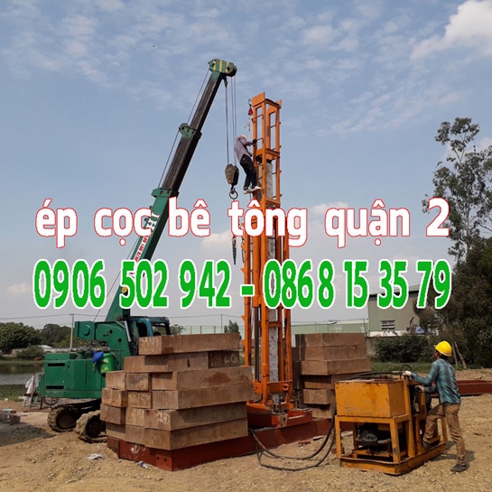 Ép cọc bê tông Quận 2 với đa dạng trang thiết bị máy móc để thi công ép cọc bê tông, giá ép cọc bê tông tại Q2 Tp HCM rẻ nhất - chúng tôi luôn có mặt mọi lúc mọi nơi khi có yêu cầu tư vấn và thi công ép cọc từ khách hàng. Ép cọc bê tông Quận 2 hiện đã có mặt trên tất cả các cũng đường, ngõ ngách trên địa bàn quận 2 Tp HCM để đáp ứng nhu cầu ngày càng tăng của khách hàng, Ép cọc bê tông Quận 2 có đúc cọc bê tông chất lượng cao và phục vụ ép cọc bằng nhieuf phương pháp khác nhau như: ép tải, ép neo, ép robot,...