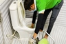 Bước 3: Đặt pittong cao su ấn mạnh từ trên xuống tạo áp lực để đẩy chất thải xuống hầm cầu.