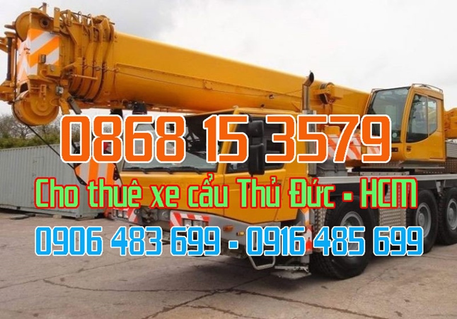 Với hệ thống xe cẩu dàn rải khắp quận Thủ Đức tp HCM - công ty cho thuê xe cẩu tại Thủ Đức, TpHồ Chí Minh có đầy đủ các loại xe cẩu từu 1,5 tấn đến 300 tấn đáp ứng tốt nhu cầu thuê xe cẩu của quý khách hàng tại Thủ Đức và các quận khách trên địa bàn tp hcm. Chúng tôi luôn hướng đến môi trường làm việc thân thiện, năng động bởi khi tinh thần thoải mái chất lượng công việc sẽ được đảm bảo tốt nhất. Cho thuê xe cẩu Quận Thủ Đức HCM phục vụ cẩu, hạ, vận chuyển hàng nặng, hàng quá khổ, quá tải, đòi hỏi độ an toàn cao, làm việc trong các công trình, rút hàng trong con’t, chuyên chở cây cảnh…